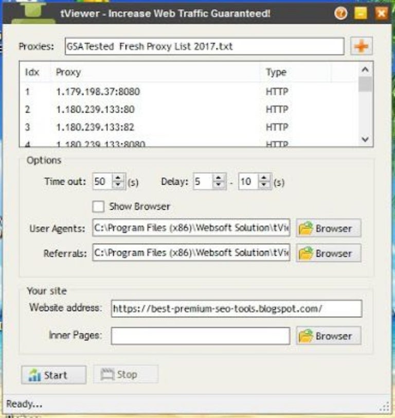 This BOT Allows you to artificially Increase the visits of any existing website, any counter, both with a simple refresh, both obscuring the ip proxy server using a database containing, for systems using the count visists by IP.